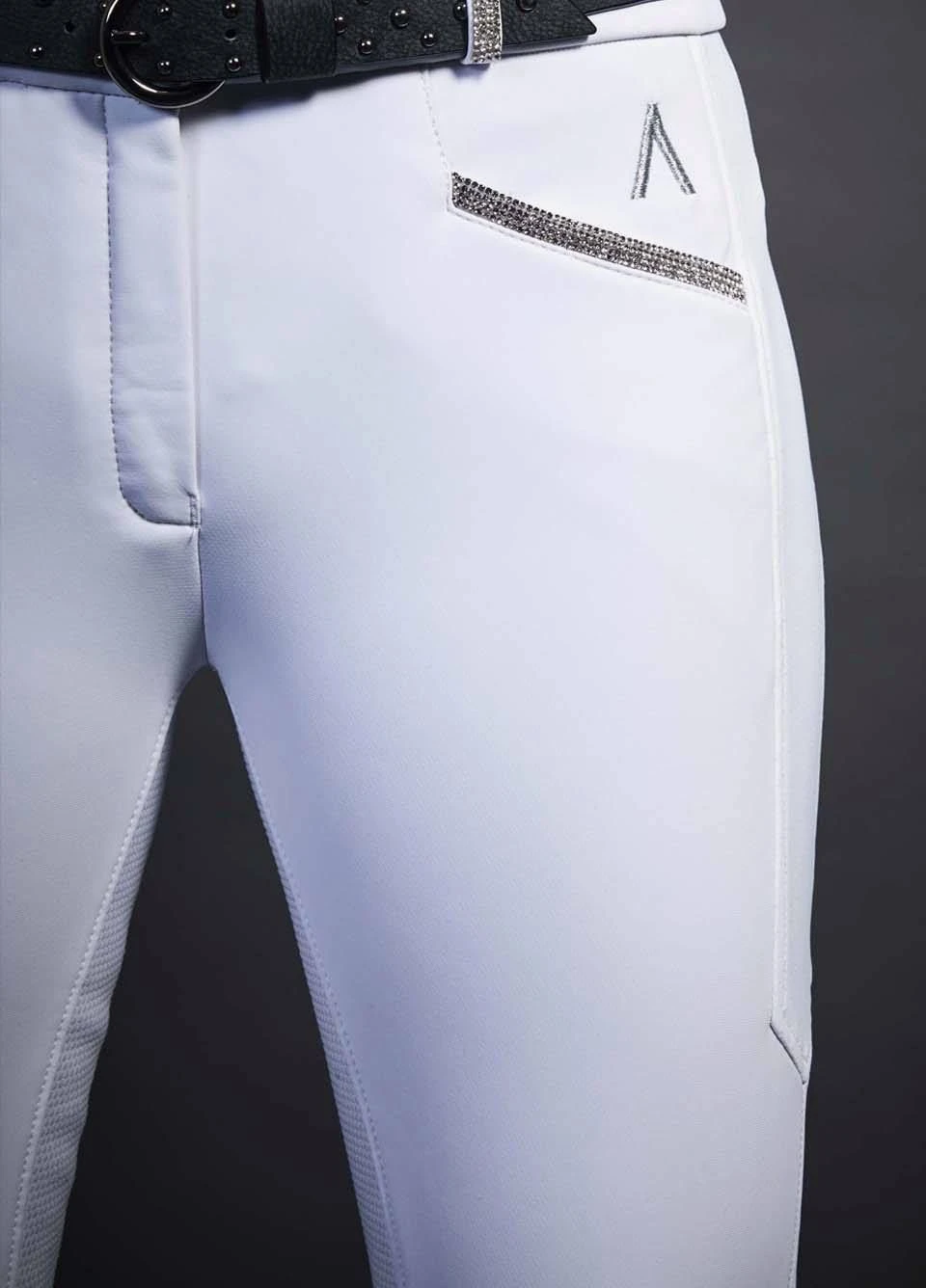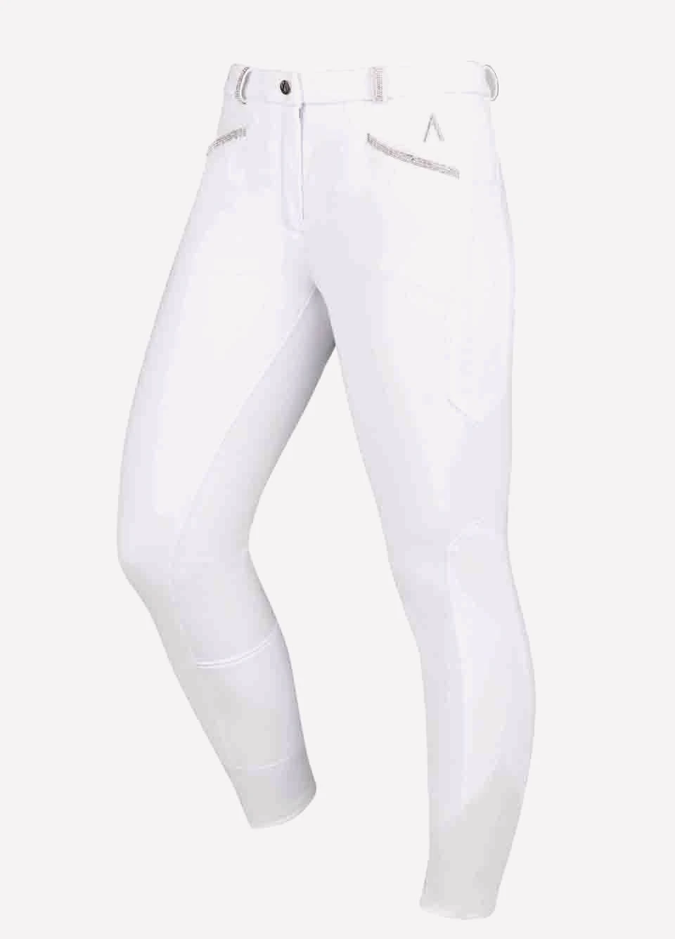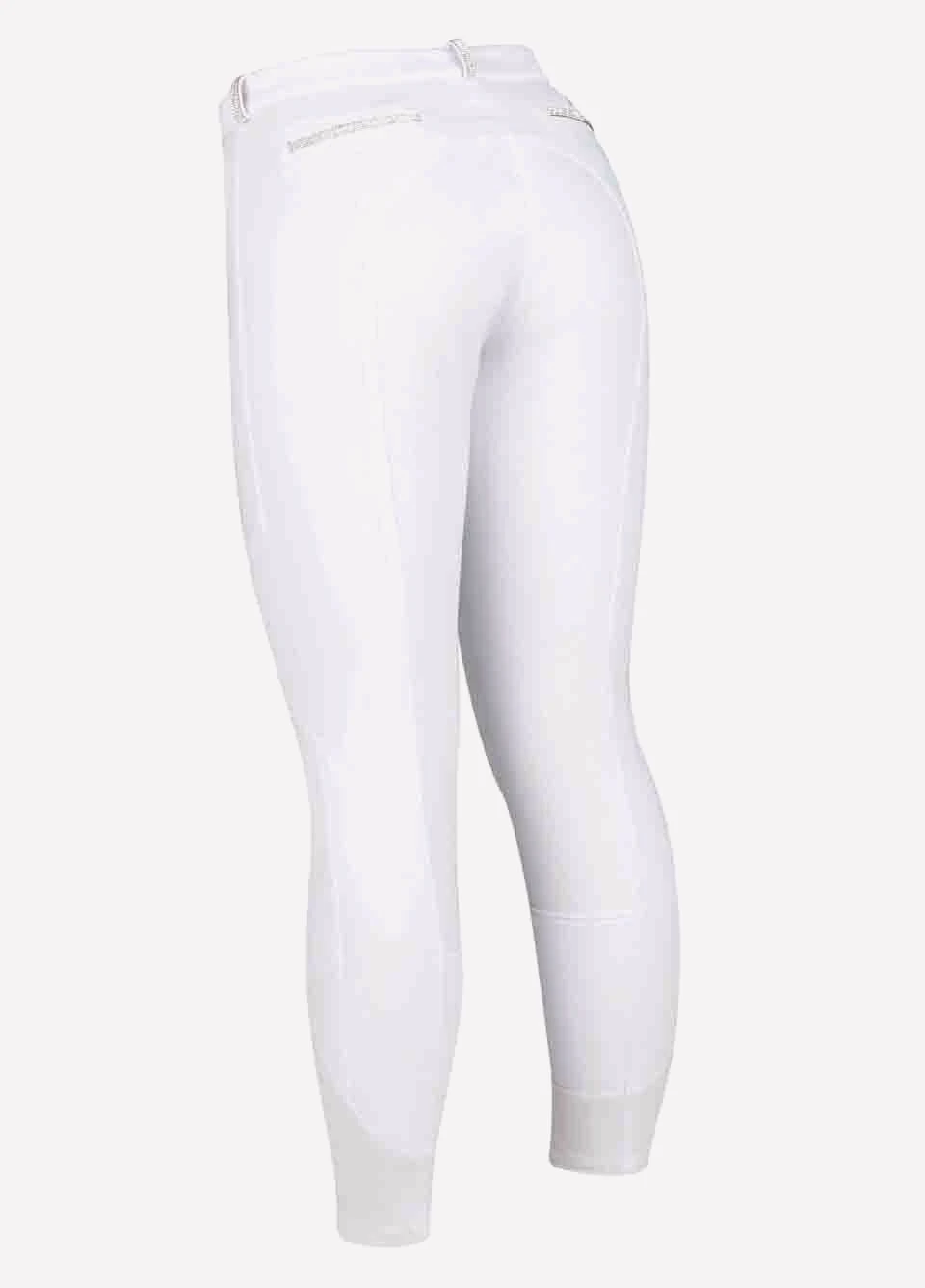 Additional features of the Dublin Black Linda Breeches include stunning sequin detailing on the belt loops and pockets for a classy finish, a satin finish comfort cuff and a silicone gel print full seat for stability in the saddle.