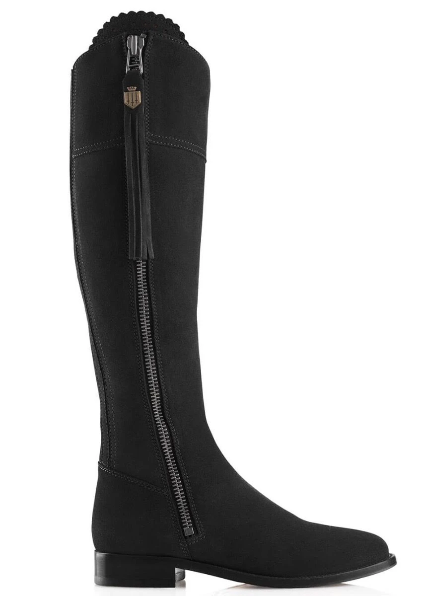 The Regina features a 5cm elasticated stretch panel to achieve the perfect tailored fit. A memory foam insole compliments a leather/rubber composite sole for improved longevity and ultimate comfort. Dressed up or down, the Regina is a true Fairfax & Favor signature to suit any occasion. The Regina is available in many colours, in suede or leather, with or without a 5cm Cuban heel.