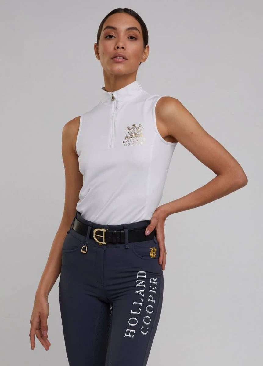 The Holland Cooper technical riding tops are expertly crafted with practicality and form in mind, this base layer offers warmth and comfort hand in hand. Perfect for keeping cool in whilst training while providing an insulating layer during the winter. Designed for a super soft feel against the skin. Finished with sports-inspired graphics and HC signature embroidered logos.