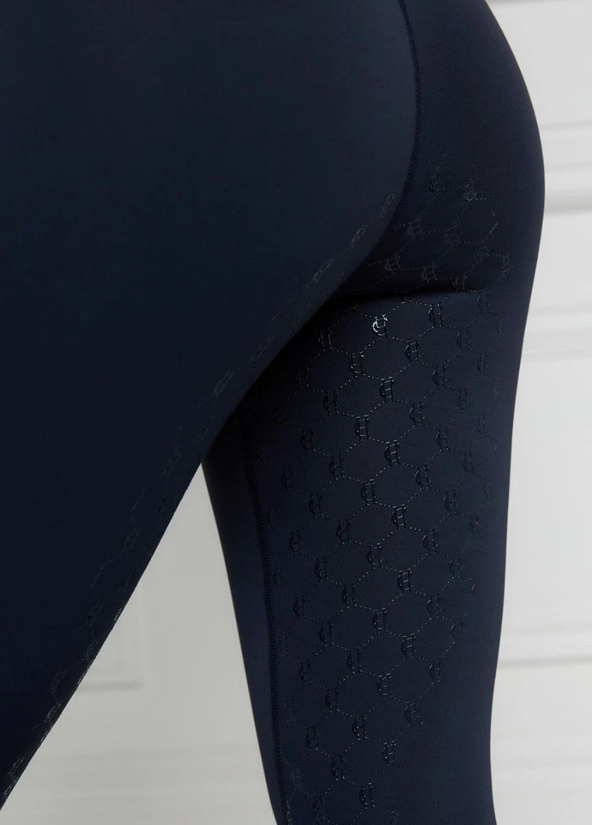 This riding legging is designed to ensure maximum movement and comfort while in and out of the saddle. The HC technical stretch high-waisted, squat-proof, ultra-feminine legging is designed with a super-slim fit that lifts and contours to your figure. Complete with monogramed silicone riding knee grips, signature gold rivet and quick-dry technology. HC sophisticated fabric also ensures that the leggings are not see-through.