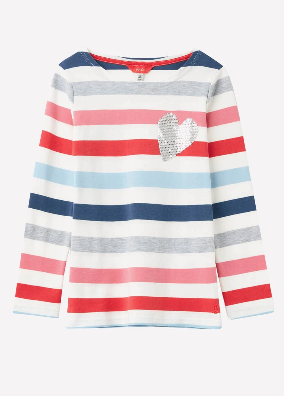 The Joules Junior Harbour Luxe Jersey Top is made from 100% cotton, providing active comfort to the wearer. A “mini-me” version of the most loved adults Joules Harbour range. A colour changing sequin heart makes it extra special.