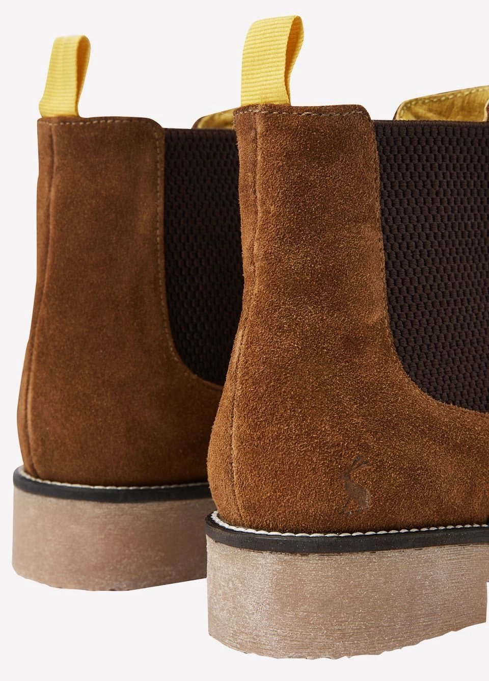 Casually styled with a suede upper and a crepe sole, the Joules Chepstow Casual Chelsea Boots feature honeycomb-texture gores and pop-colour pull tabs that make getting them on and off a breeze.
