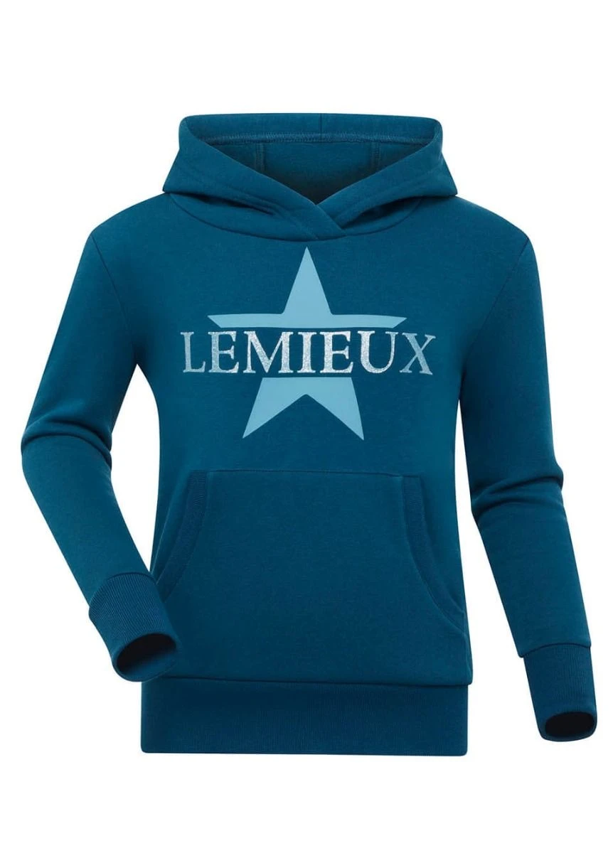 New to the Mini Rider Range! A soft touch brushed back fleece hoodie with cross over hood for a cosy feel and kangaroo pocket for keeping little hands warm. The LeMieux star print on the front chest adds some sparkle to a comfy look.