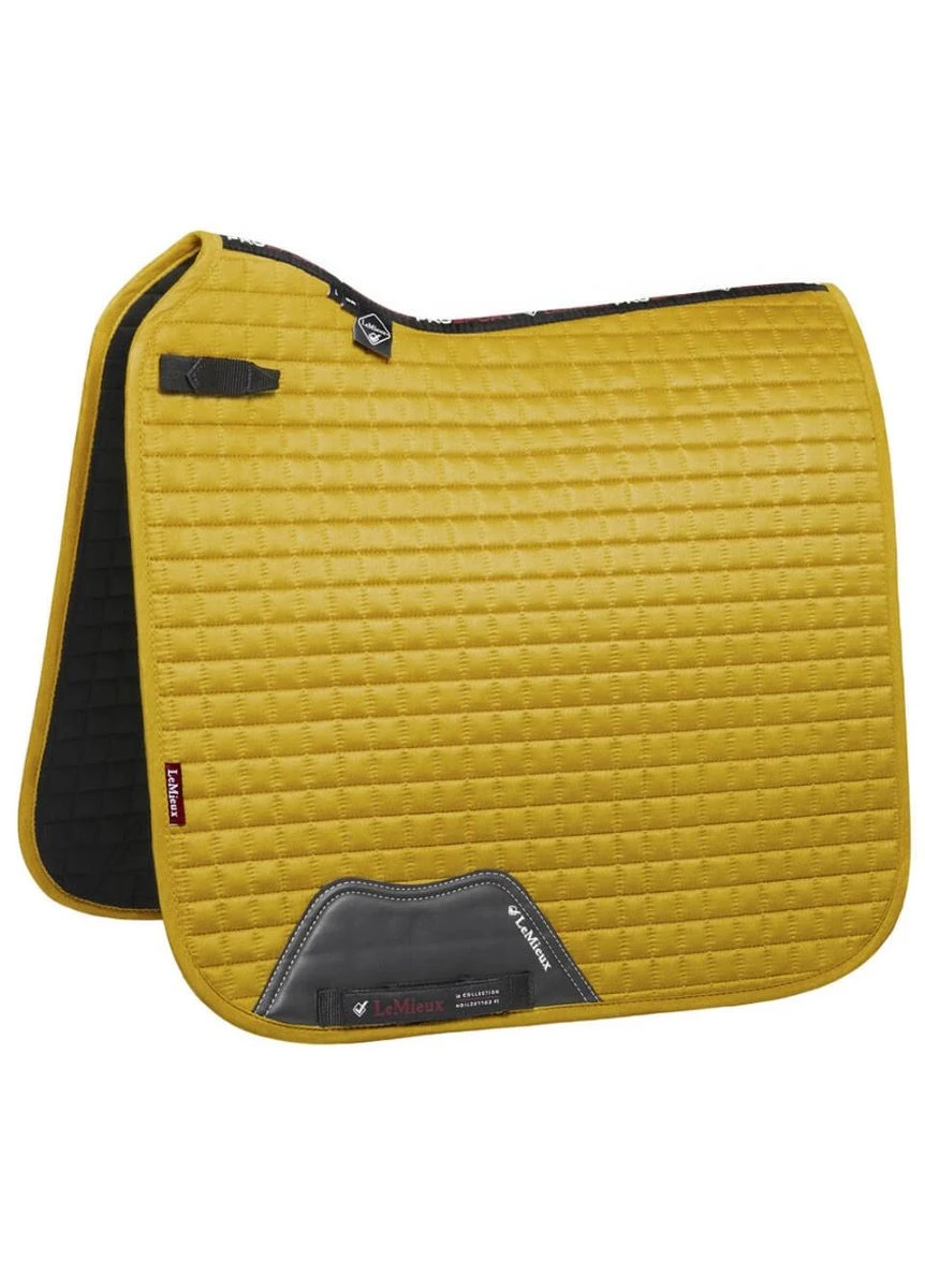 Now with our Super Soft Suede Binding & New PU Leather girth protection area, this beautiful suede Dressage square sets new standards in style & comfort. Now established as the iconic LeMieux look when combined with matching polo bandages and fly hoods there are colours to suit most horses and tastes. Designed to fit a wide range of dressage saddles with its high wither andย elasticated D-Ring tabs . The luxurious suede top side with soft suede binding is complimented by a new super soft Bamboo lining to absorb & control sweat under the saddle and are beautifully comfortable and secure – minimising friction.