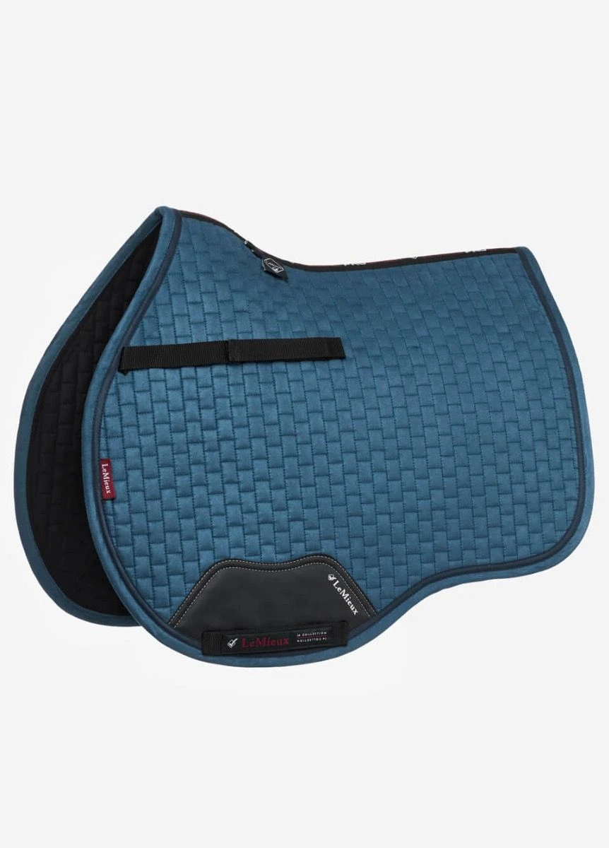 Designed with a modern new brick quilt, this beautiful suede General Purpose square sets new standards in style & comfort. Now established as the iconic LeMieux look when combined with matching polo bandages and fly hoods there are colours to suit most horses and tastes. Made to fit a wide range of general purpose saddles with its high wither, standard long straps & PU Leather girth protection area. The luxurious suede top side and soft suede binding is complimented by a super soft Bamboo lining to absorb & control sweat under the saddle and are beautifully comfortable and secure – minimising friction.